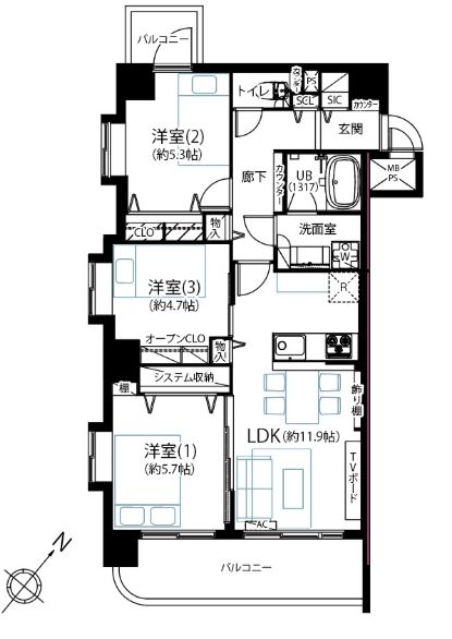 | バルコニー | 11.0m2 |