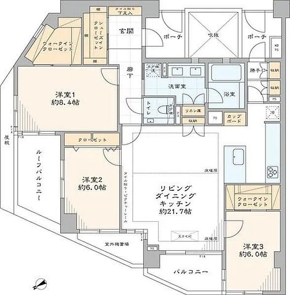 - 〇専有面積106m2でゆとりのある3LDK