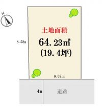 | 土地面積 | (実測)64.23m2 | 他に私道面積 | 有り:4.22平米m2 |