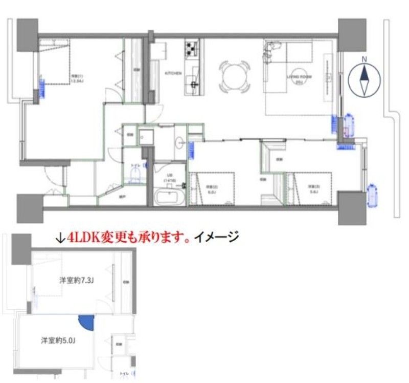 | 備考 | 〇維持費等 エレベーター保守費:2,270円/月 〇その他 駐車場 有 24,000円/月 バイク置き場 空無 駐輪場 有 200円/月 ペット 要相談 間取は3LDK ※追加45万円で4LDKに変更可能 ※司法書士は売主指定となります。 |